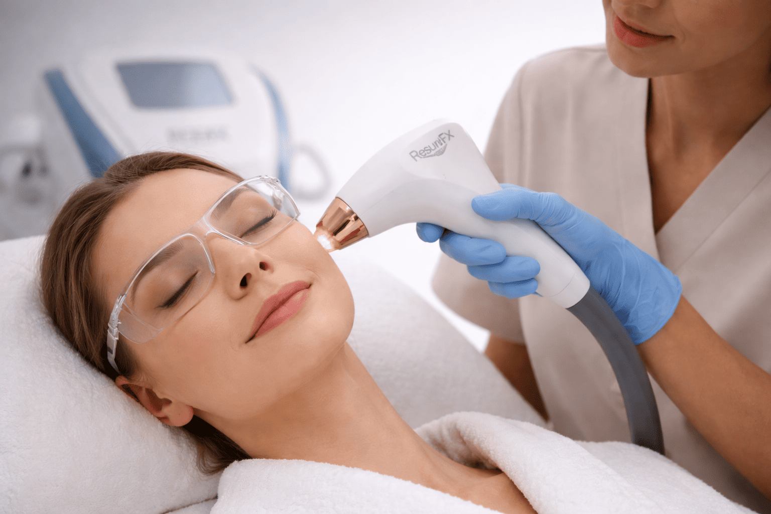 Насадка ResurFX позволяет работать и с деликатными участками, включая область вокруг глаз. Параметры подбираются индивидуально и контролируются специалистом на каждом этапе.